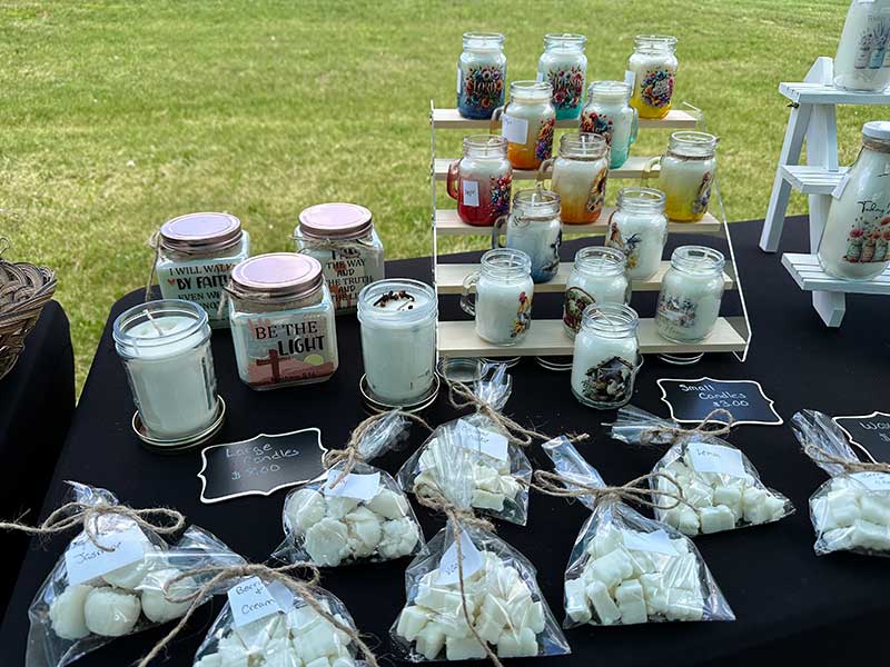 A Turn of Beauty • Ashley’s Little Nook & Bakery • Bad Creek Timber LLC • Baked in Bliss • Ocean Breeze Crafts • Black Raven Textiles • Busy Bee Creations • Casady Family Crafts • Couture Custom Crafts • Crabigail’s Crafts • Cuddles & Critters • Cz Creations • Dancing Bears Tea Co. • Designs by Dan • Echos of Mayse • Elsie Tye-Dye • Emilia’s Graces LLC • FancyPance Macrame & More • Fort Blenheim Candle and Clay Works, LLC • Fun With Yarn • Gone Loopy • Green Gables Candling • Happy Valley Crafters • Honeybees’s Bakery • Hopeful Delights, LLC • it makes scents • KayKay Rain Boutique • Lazy Beagle 3d Printing • Lilly Bow Chic • M&Ms Crafts and Creatives • Midnight Allycat • Milk & Orchids, LLC • Ocean Breeze Crafts • Off The Hook With Becky • Pappy’s Patchwork • Poplar Spring Botanicals • PrePOPsterous gourmet popcorn • R & B Creatives Woodcrafts & Laser Engraving • Robin’s Rememberies • Roy’s Woodturning • Seed To Sow Jewelry Collection • Sherri Wiseman • Slice of Heaven Baked Desserts • Sparkling Creations Jewelry • Student-Made JMU • Summit+Sea Creations • That Cool Costume Guy • This and That Crochet • Tomlin Family Acres • UpCycle Designs by Carol • Vast Selections