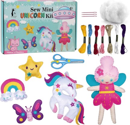 - SEW MINI UNICORN PLUSHIES – This sew mini unicorns set comes with everything you need to stuff and sew 5 unicorn themed plush minis. Includes pre-cut and pre-punched felt, stuffing, multiple colorful threads and plastic needles, a pair of scissors, and instructions. The multiple sewing projects in this kit allow for incremental learning by starting with the easy patterns and progressing to the more challenging designs as well as leaving plenty of room for mistakes